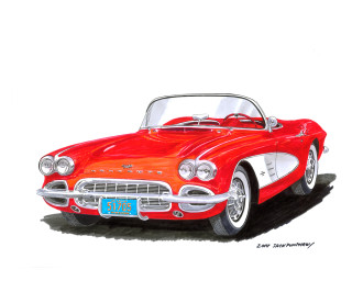 newest car art 1961 and 1986 Corvettes