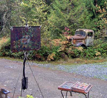 Fall in an Errington wood with a White Super power and an Enfield at a street party fewer automotive pieces this year but an exciting year anyway, next year an exhibit in NY NY.